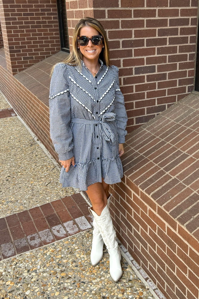 Whether you style it with sneakers for a casual day or elevate it with boots and jewelry for a night out, this gingham ruffle mini dress is the versatile boutique piece your closet needs.