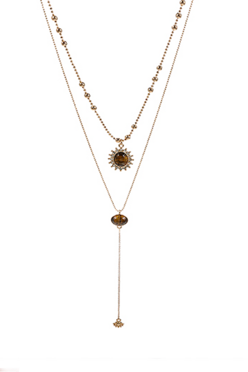 Layered Pave Oval Stone Y Choker-Brown/Gold
