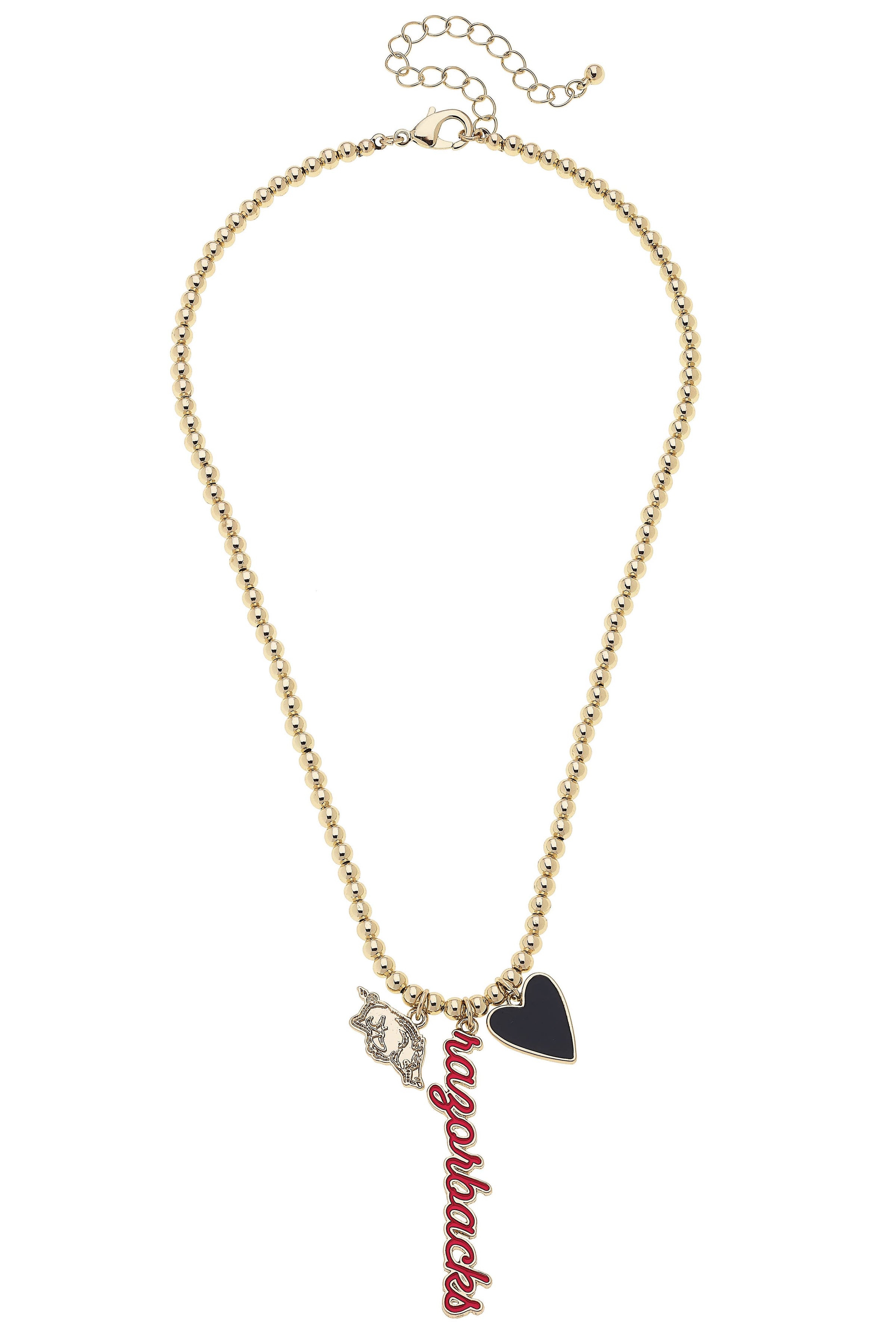 Canvas Style - Arkansas Razorbacks Ball Bead Charm Necklace in Shiny Gold