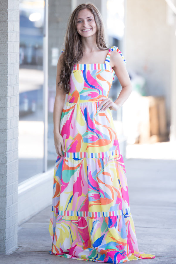 SALE-Floral Fantasy Stitch Detail Dress-Cream
