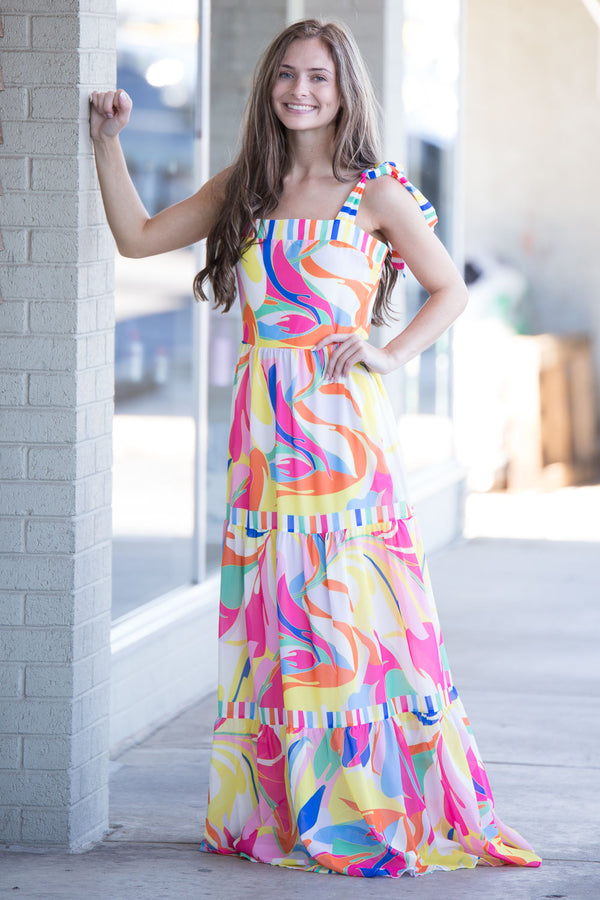 SALE-Along The Shore Bow Tie Shoulder Dress-Blue