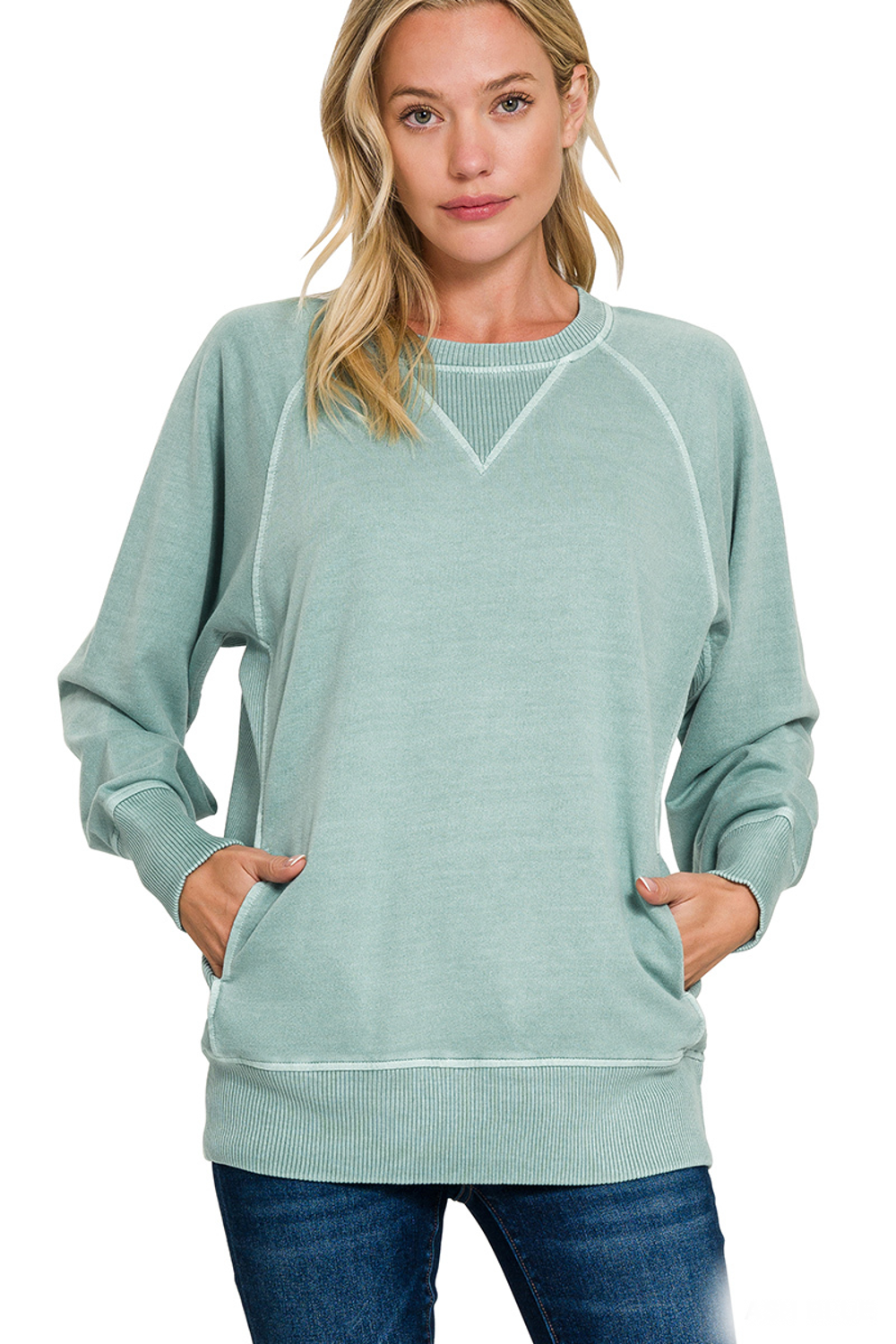 Vintage-inspired style meets everyday comfort in the Zenana Pigment Dyed French Terry Pullover with Pockets. Made from soft, premium French terry fabric, this pullover features a unique pigment-dyed finish that gives each piece a lived-in, effortlessly cool look—perfect for casual days and laid-back outfits.