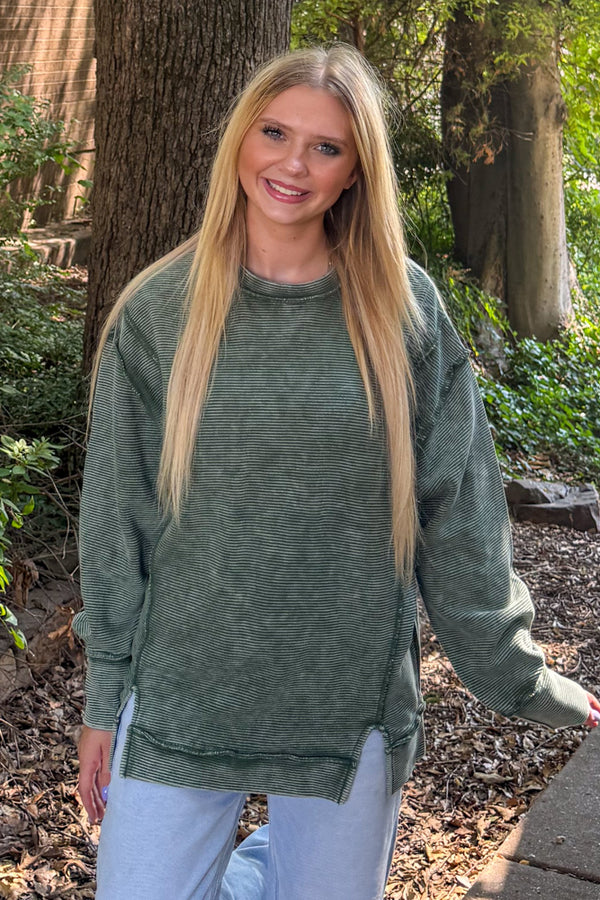 Zenana-Acid Washed Double Ribbed Exposed Seam Pullover