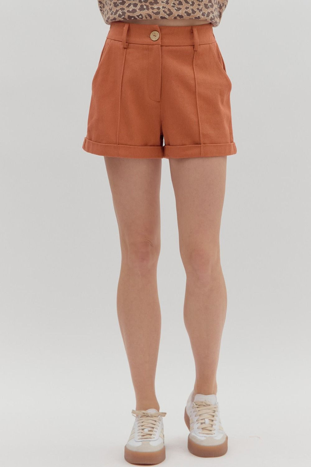 Entro Rolled Cuff Pintuck Shorts – Rust