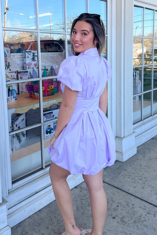 Fit and Flare Bubble Sleeve Zipper Front Dress-Lilac